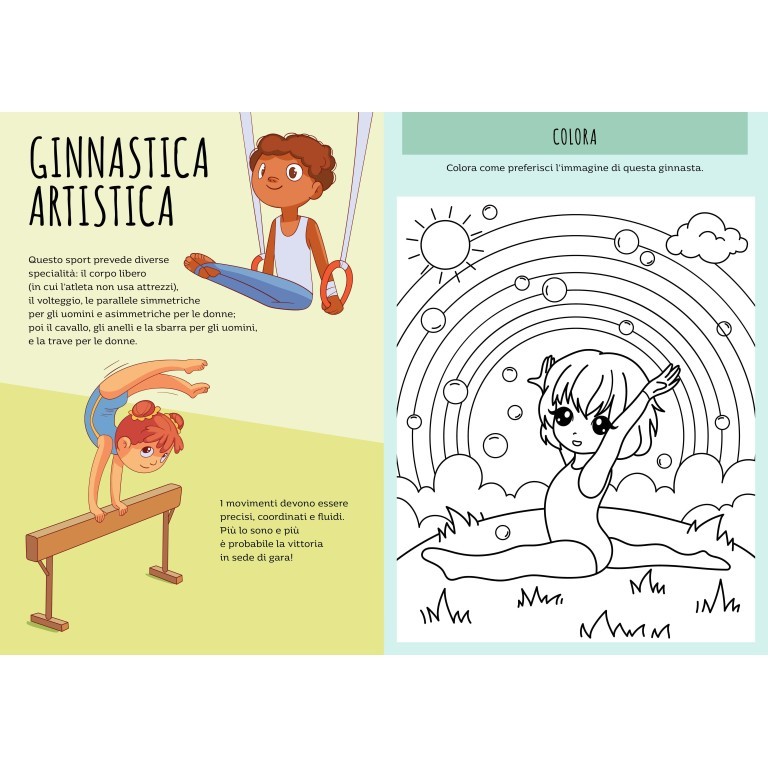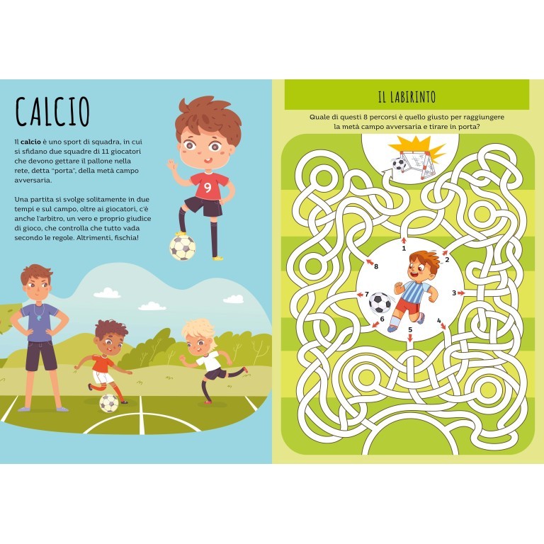 Impara e divertiti con un sacco di giochi sul mondo degli sport! Un libro di attività per i più piccoli con pagine da colorare, labirinti da risolvere, adesivi da attaccare e tante divertenti informazioni sugli sport individuali e di squadra.