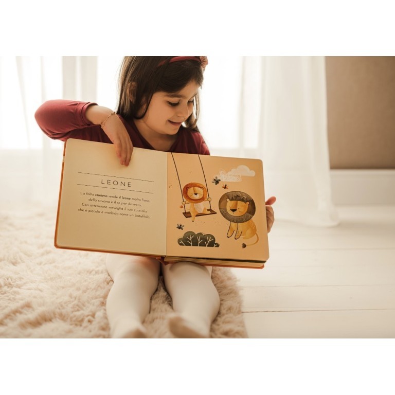 Discover the fox, the lion, the sheep, and their adorable cubs by flipping through the pages of this book! Each page holds a surprise: an insert of a different material to experience the world through touch
