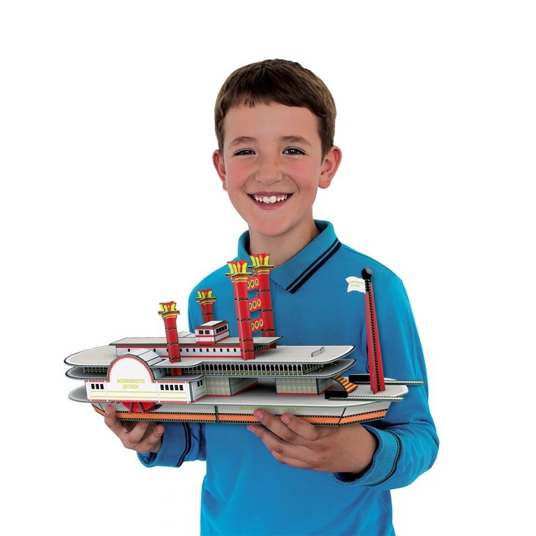 Build your own steamship, an icon of the great southern American river: the Mississippi. With their puffs of steam and spray from the paddlewheels, steamships have been carrying people and cargo through America since 1811.