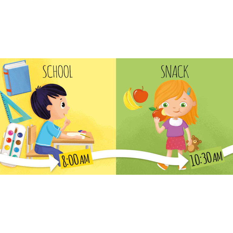 A one-metre long puzzle to match in pairs, to discover all the stages of your day. Perfect to accustom the little ones to their daily routine.