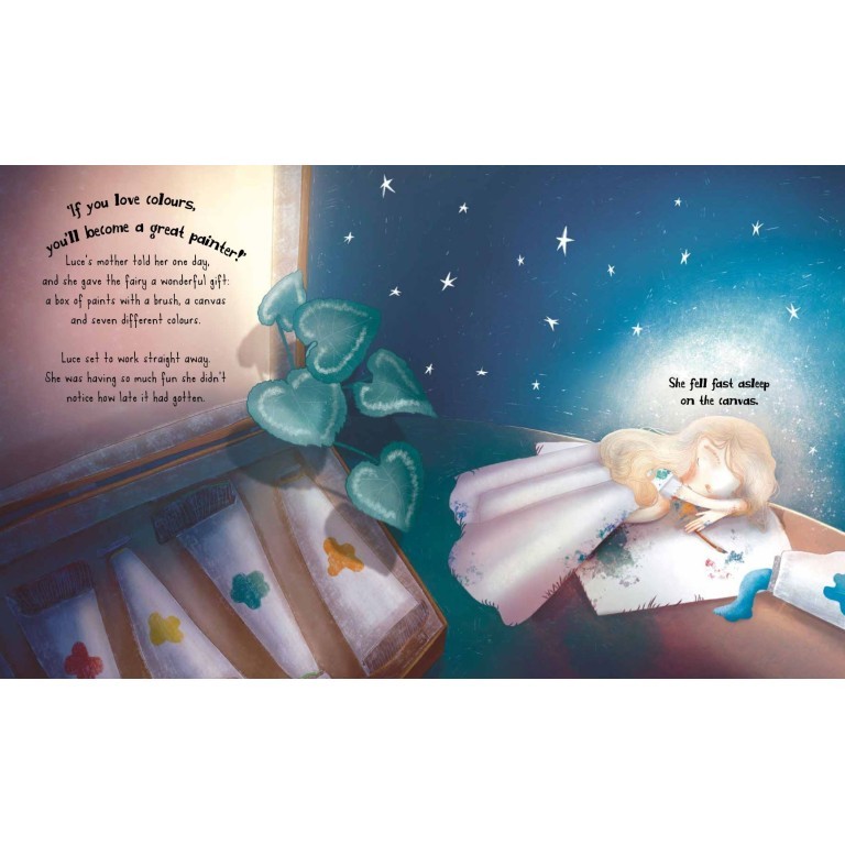 Luce is a fairy who doesn't like snow, because when the garden turns white, she becomes invisible. Her wings are completely white, but she wishes they were a thousand colors. She doesn't know, however, that white already contains all the colors of the rainbow, just like her! How will she find that out?