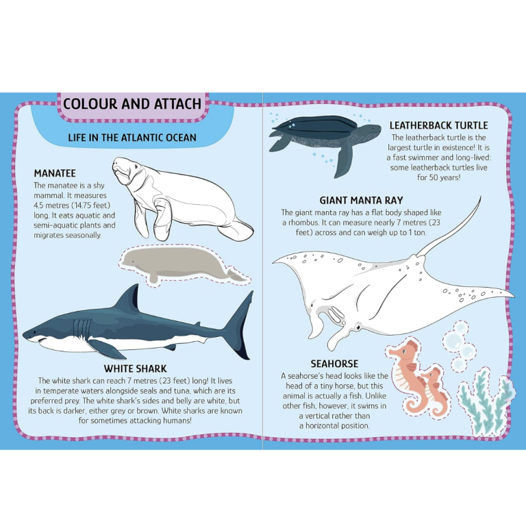 A kit featuring 50 stickers, 200 transfers, and a 32-page book to discover all the secrets of the sea and oceans in a fun and engaging way!