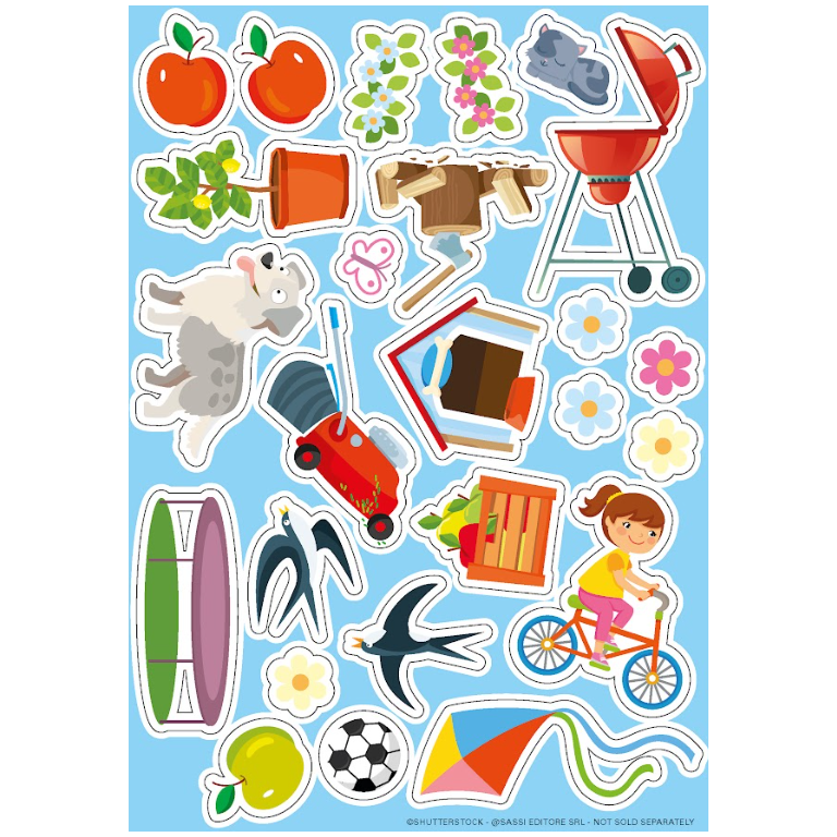 Leggi il libro di 16 pagine e divertiti con le attività proposte. 100 stickers, 200 trasferibili e una penna speciale da ricalco per completare e colorare i quattro fondali con la tua fantasia!