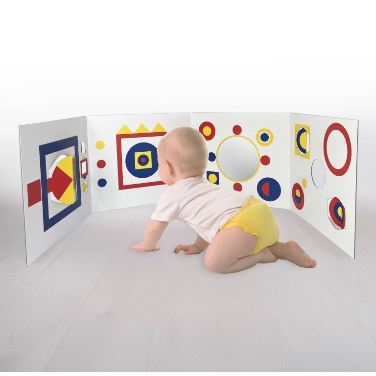 TOC-TOC est un livre aux contrastes forts pour les enfants à partir de 6 mois. Avec son ouverture en forme de portefeuille, il crée un espace interactif pour l’enfant qui vient d’apprendre à se tenir assis sans aide. Ce livre utilise le concept de contraste élevé et recrée un espace créatif unique qui favorise une excellente première approche de l’objet-livre.