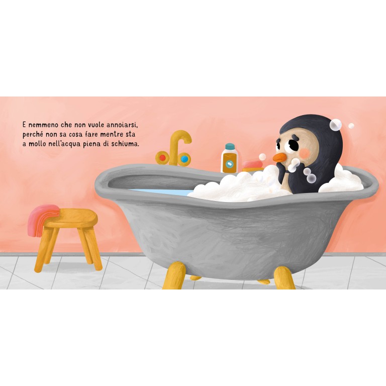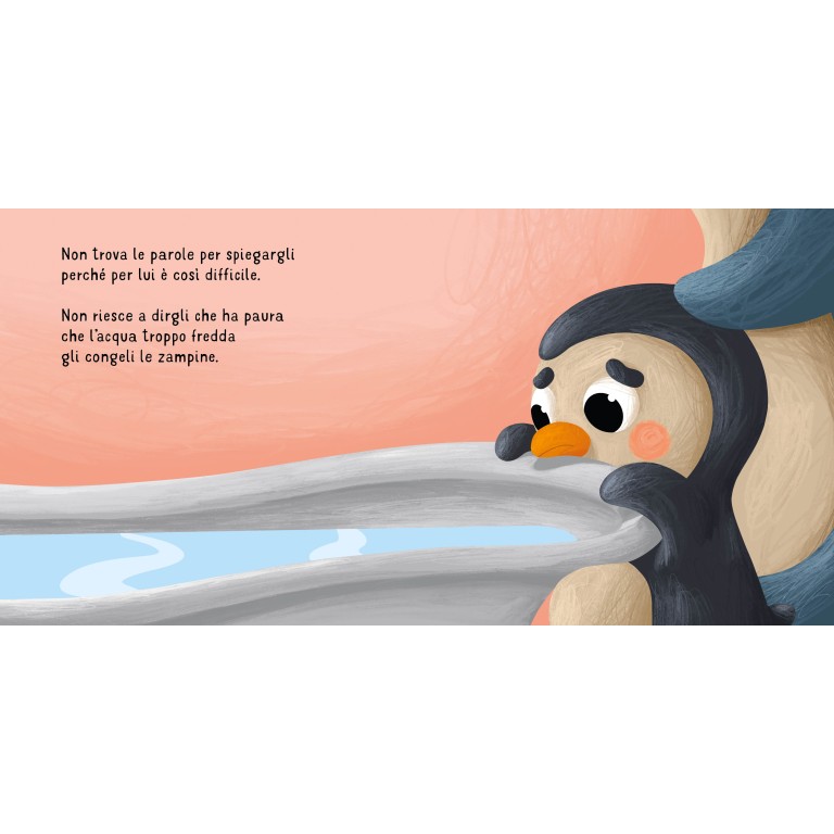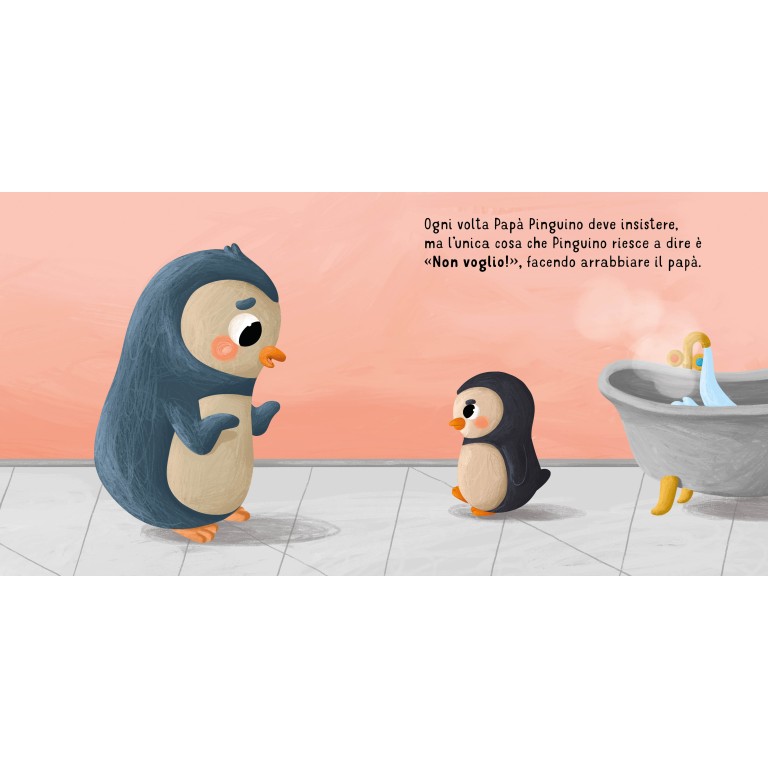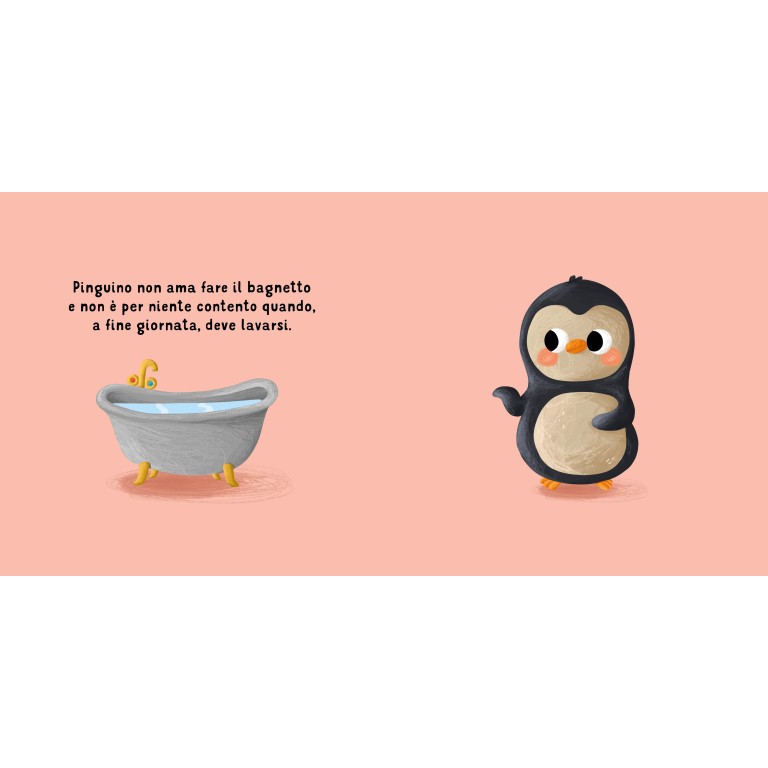 Fare il bagnetto non è sempre un momento semplice per i più piccoli: tra acqua magari troppo fredda, sapone negli occhi e un po’ di noia, può trasformarsi in una vera sfida quotidiana. Pinguino lo sa bene: ogni sera trova mille scuse per non fare il bagno, ma grazie alla pazienza del suo papà e all’aiuto di un simpatico narvalo di gomma, riuscirà finalmente a trovare le parole per esprimere le sue paure. Il bagnetto, così, diventerà un’occasione speciale per giocare, rilassarsi e condividere momenti di complicità.