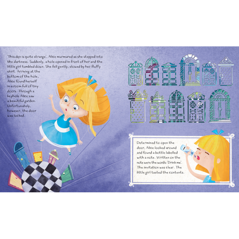 Following a white rabbit, Alice arrives in a fantasy world populated by bizarre and wacky characters... amid playing cards, evanescent cats and un-birthday parties, will she find her way home? Flip through the finely perforated pages and follow the little protagonist on her journey to Wonderland.