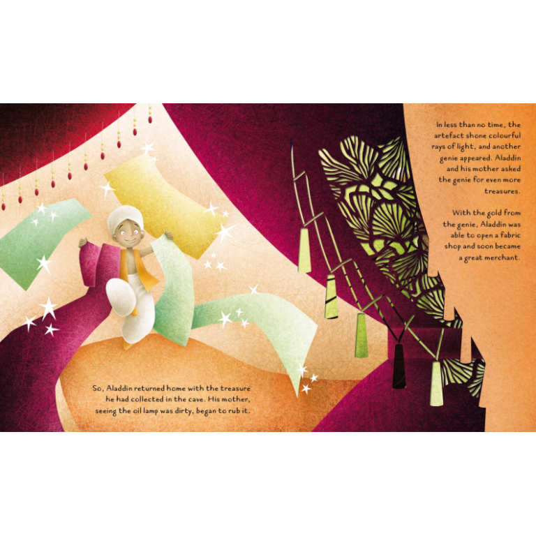 In the heart of a fantastical Arabia, young Aladdin enters a mysterious cave in search of a lamp with prodigious powers, thus beginning an extraordinary adventure among enchanted palaces, impostor magicians, a beautiful princess, and a magical Genie! Discover one of the most beautiful fairy tales of oriental inspiration through finely laser-cut pages and let yourself be captivated by its magic.