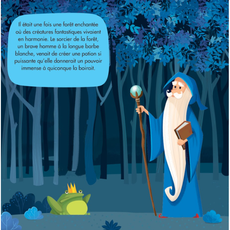 Aventure-toi dans la forêt enchantée parmi les magiciens, les licornes et les créatures fantastiques, lis le livre et envole-toi avec ton imagination !