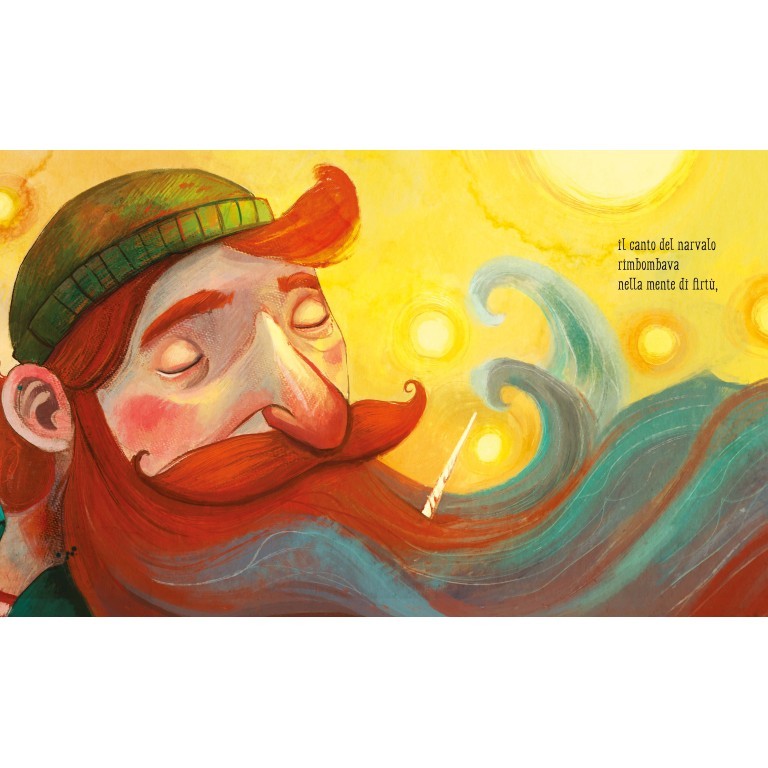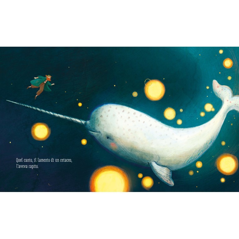 Artù, passeggiando lungo la riva, un giorno udì un canto che gli ricordò qualcosa di molto vicino al suo cuore. Navigò per giorni alla ricerca della creatura marina dal canto perduto, superando le più faticose avversità dell’oceano. Quando capì di essere prossimo al richiamo, si immerse tra le acque buie. Artù e il triste narvalo si guardarono negli occhi. I due, per quanto diversi, si capirono all’istante: la solitudine non si spiega a parole, ma si vince guardandosi dentro.