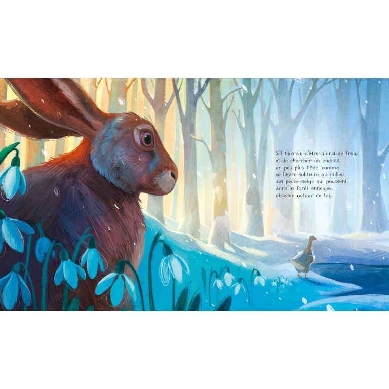 L’hiver est blanc et délicat, enveloppé dans sa lenteur silencieuse. Si tu as aussi froid qu’un lièvre solitaire, si tu es aussi fatigué qu’un blaireau endormi, aussi perdu qu’un petit fauve, accueille cette saison en toi et embrasse tes émotions positives et négatives.
