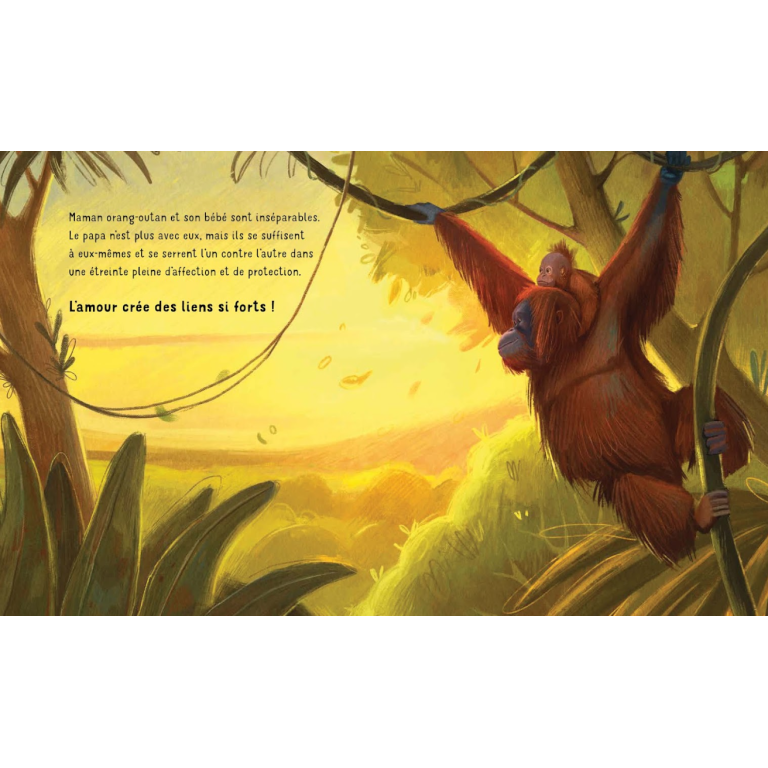 Un album illustré qui nous dévoile comment l’amour peut naître et s’épanouir sous toutes ses merveilleuses facettes : de l’étreinte tendre d’une maman cane qui accueille une petite tortue, à l’amour sans limites de la grande famille éléphant, jusqu’à la danse enchanteresse des hippocampes et à l’étreinte unique entre une maman orang-outan et son petit. À travers des images et des mots délicats, le livre raconte comment l’amour peut dépasser toutes les barrières et comment des liens authentiques peuvent se construire de mille façons différentes.