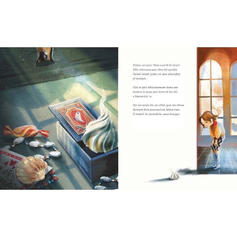 Un voyage délicat et poétique dans le monde des désirs et des passions cachées, qui nous invite à réfléchir sur ce que signifie réellement poursuivre nos rêves. À travers une narration tendre et illustrée, on découvre comment, avec l’amour pour la cuisine et le courage de créer de nouvelles recettes, Vera nourrit son rêve jusqu’à le voir grandir, prendre son envol et devenir réalité. Un voyage fait de douceurs et de fantaisie, où un rêve, initialement silencieux, guide Vera vers de nouvelles possibilités, transformant ce qui était caché en une vocation lumineuse