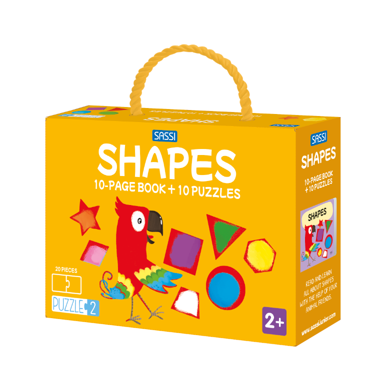 Learn shapes with the new edition of the successful Puzzle 2 series! Read the booklet, then learn to distinguish the main geometric shapes by assembling the 10 pairs of mini-puzzles.