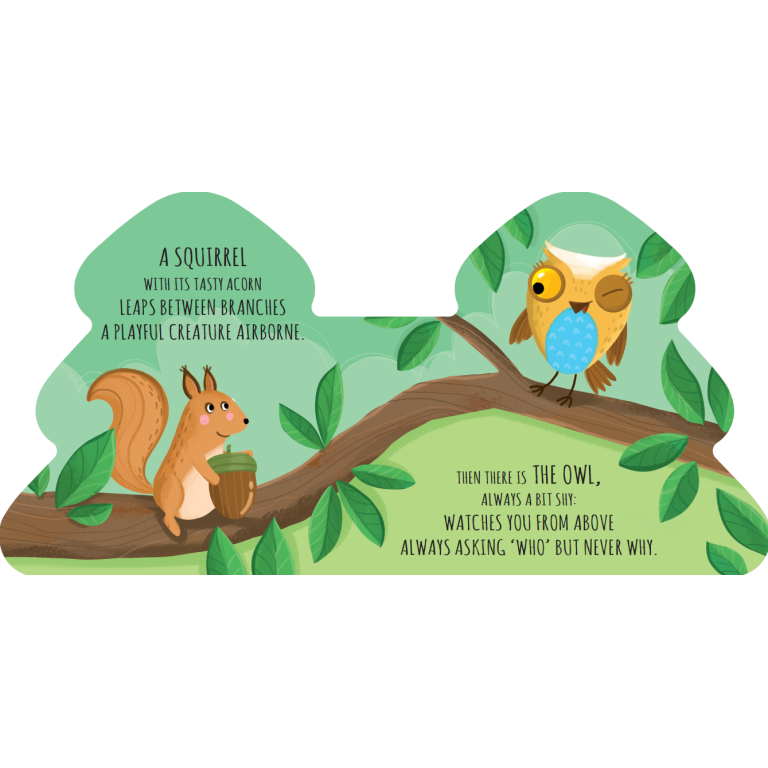 This small fir-tree shaped board book is a great opportunity to introduce little ones to squirrels and owls, brown bears and robins: watching them play among the branches and bushes will be the perfect way to learn to respect the forest and the animals that live there.
