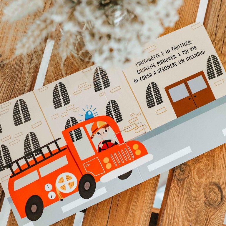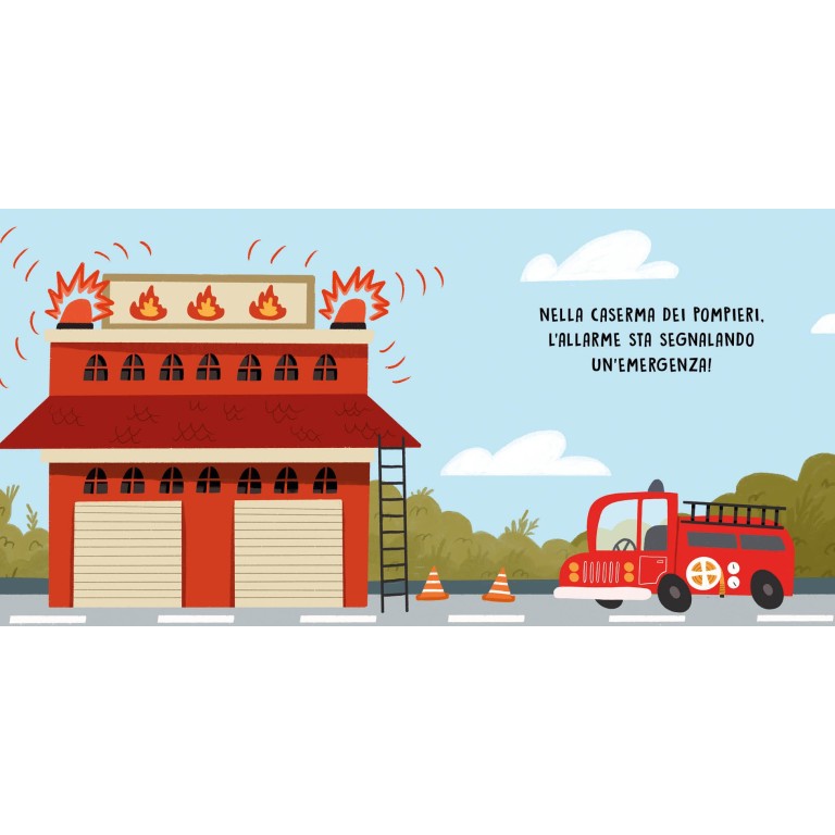 Un libro sonoro con illustrazioni semplici e delicate e sei deliziosi suoni, per imparare a riconoscere i suoni provenienti dalla caserma dei pompieri. Non c’è bisogno di premere un pulsante: basta girare la pagina per far iniziare i suoni!