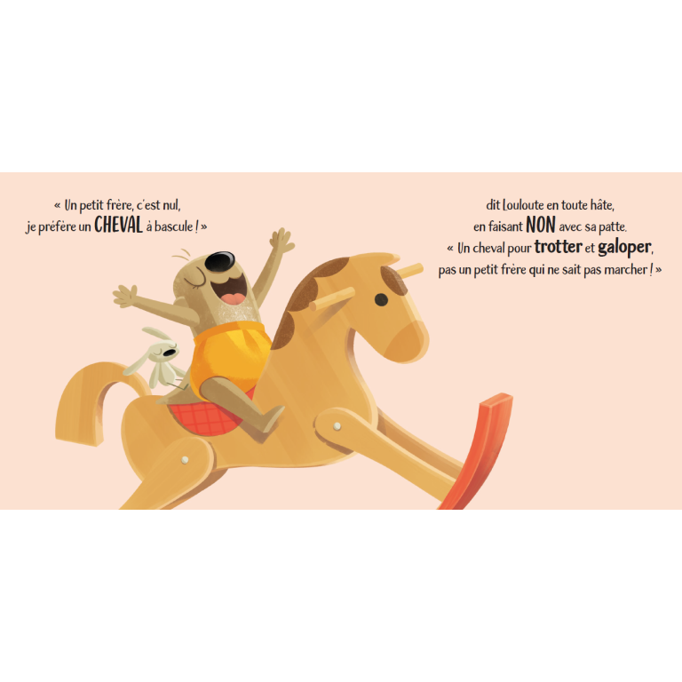 Depuis toujours, Petite Loutre est l’unique amour de sa maman. Mais que va-t-il se passer avec l’arrivée d’un petit frère ? Doit-elle convaincre sa mère de s’en débarrasser pour l’échanger contre quelque chose d’autre ? Une histoire amusante et en rimes, pleine de questions très imaginatives, pour préparer les enfants à la venue d’une petite soeur ou d’un petit frère.