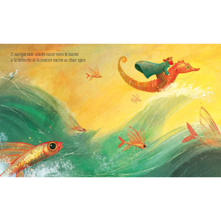 Alors qu’il se promène le long du rivage, Arthur entend un chant qui lui rappelle quelque chose d’ancré dans son cœur. Il navigue sans relâche contre vents et marées à la recherche de la créature marine au chant perdu. Lorsqu’il approche enfin de l’appel, il plonge dans les eaux sombres. Arthur et le triste narval se regardent dans les yeux. Tous deux, bien que différents, se comprennent instantanément. La solitude ne s’explique pas avec des mots : pour la vaincre, il suffit d’écouter son cœur.