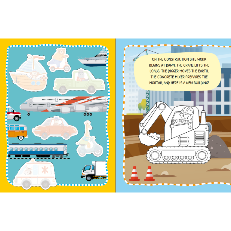 A large format box containing a book to color and complete with stickers and many different arts & crafts activities that can stimulate imagination and learning.