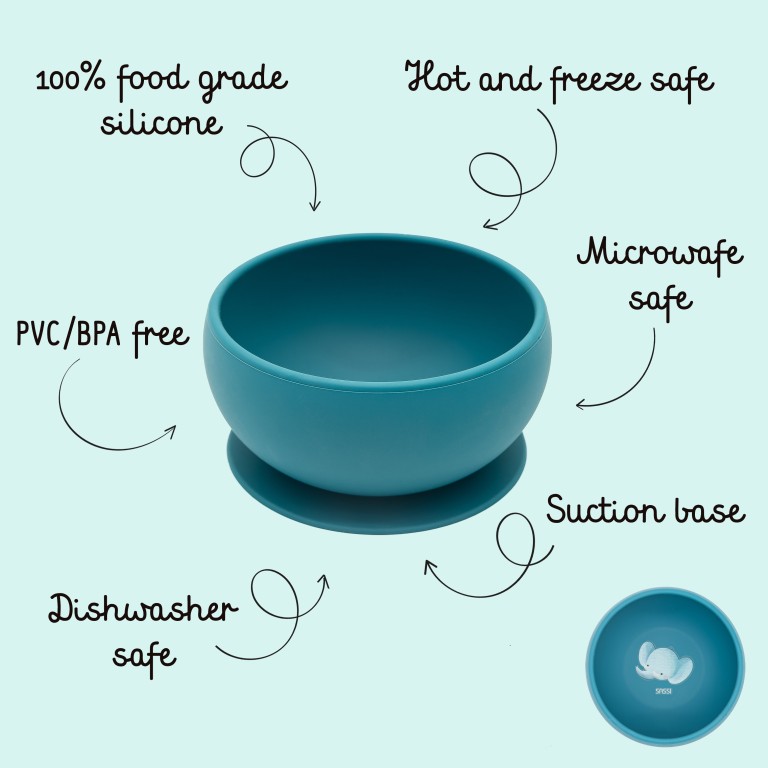 Le bol en silicone avec ventouse pour enfants de Chewy l'éléphant sage est idéale pour leurs premiers repas de grands. Les parois hautes de la bol rendent plus facile pour l'enfant de manger en autonomie et la ventouse en garantit la sécurité. Le bol est réalisé en silicone alimentaire, lavable au lave-vaisselle et adapté au four à micro-ondes. Accompagnés du sage éléphant Chewy, manger sera un plaisir pour les plus petits!