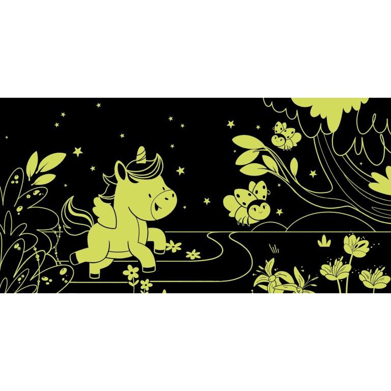 Lis l’histoire à la lumière d’une lampe torche. Puis éteins-la et observe ce qui se passe... les illustrations prendront vie !