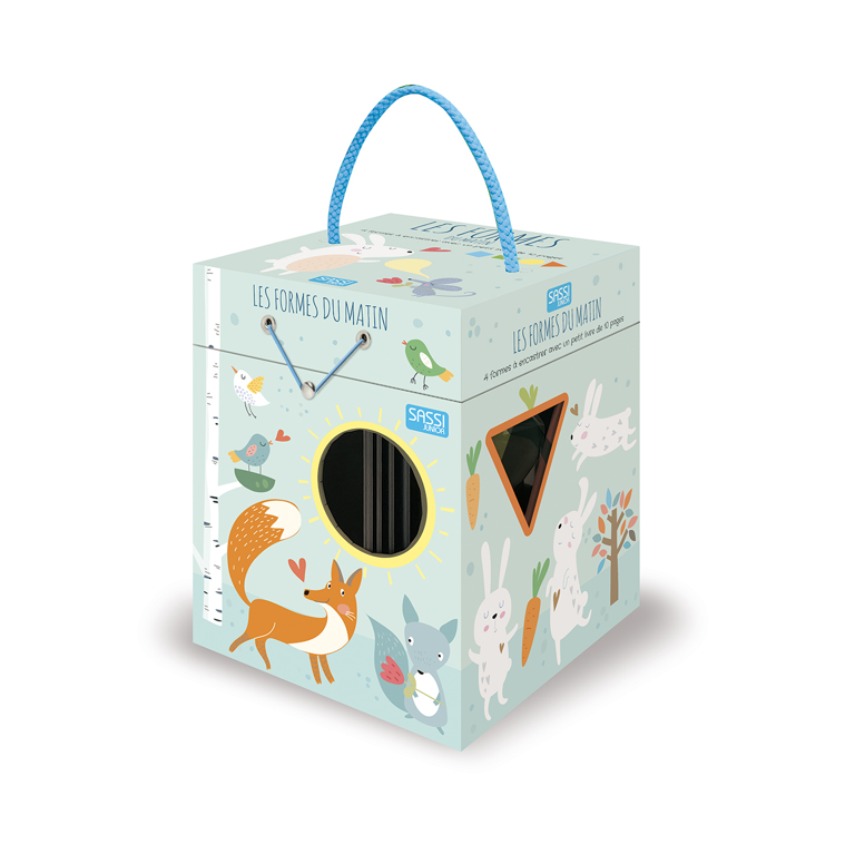 Le soleil brille dans le ciel et une nouvelle journée a commencé : lis le livret illustré et découvre les actions des petits animaux de la forêt après s'être levés ! Apprends à reconnaître les formes du cercle, du carré, du triangle et du rectangle, et devine leur place à l'intérieur du cube du bonjour : amuse-toi à les emboîter et à compléter chaque scène !