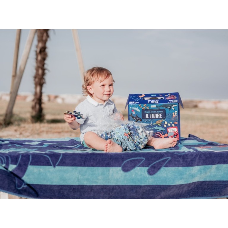 Même si on l’appelle Terre, notre planète est constituée en grande partie d’eau. Les mers et les océans, vastes étendues d’eau salée, abritent des créatures magnifiques et spectaculaires, cachent des trésors et rendent la vie possible même sur la terre ferme. Lis le livre de 32 pages pour découvrir tous les secrets du monde aquatique et construis le puzzle, où tu retrouveras les espèces animales et végétales présentées dans ses pages.