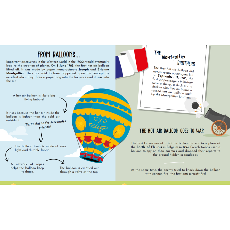 Amuse-toi à découvrir plein de curiosités dans le livre de 32 pages et à construire le modèle 3D de l’avion.