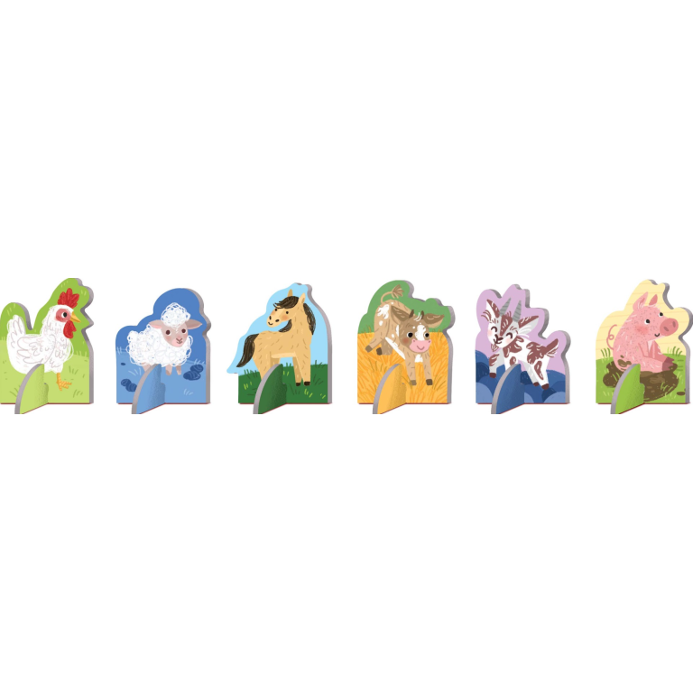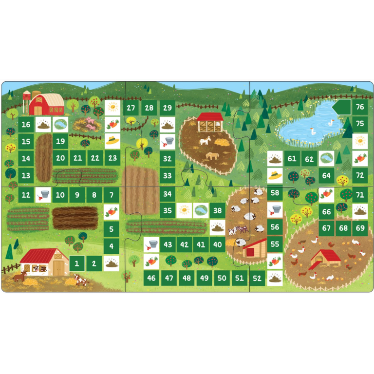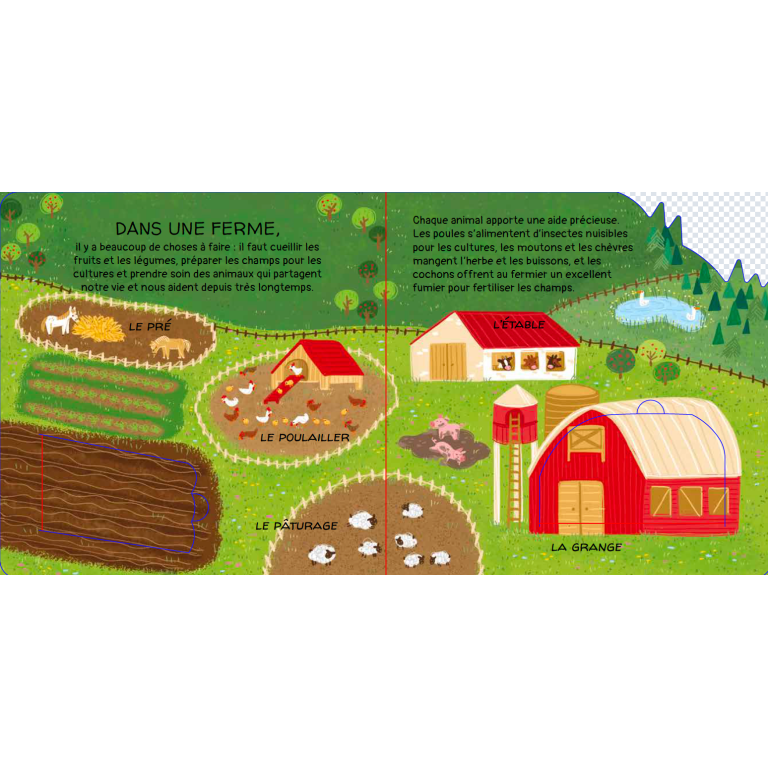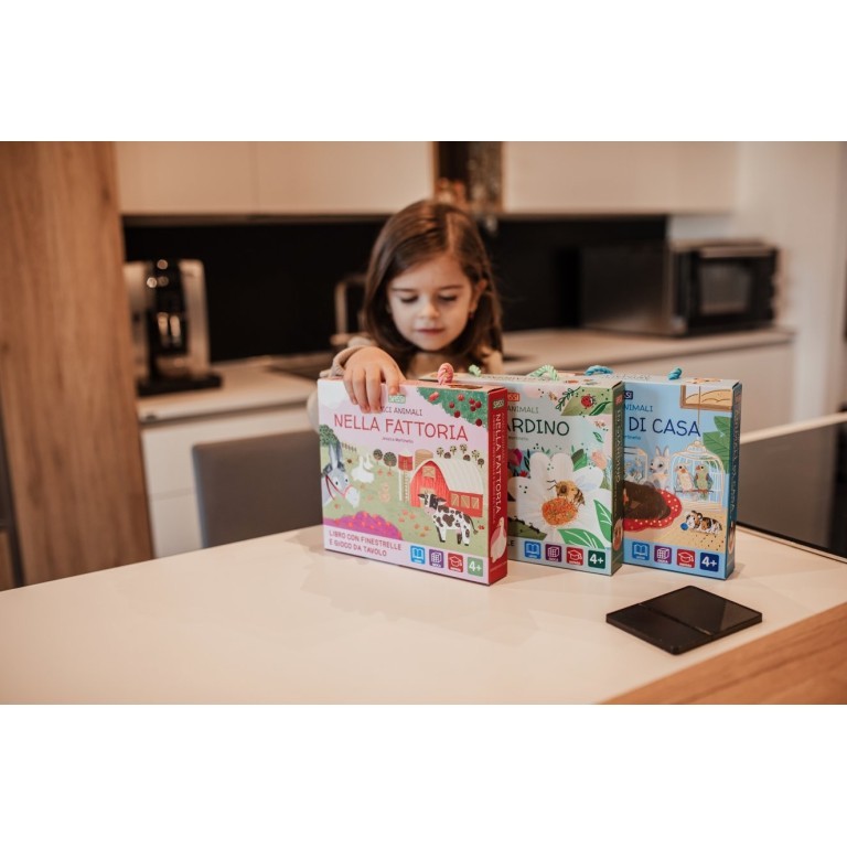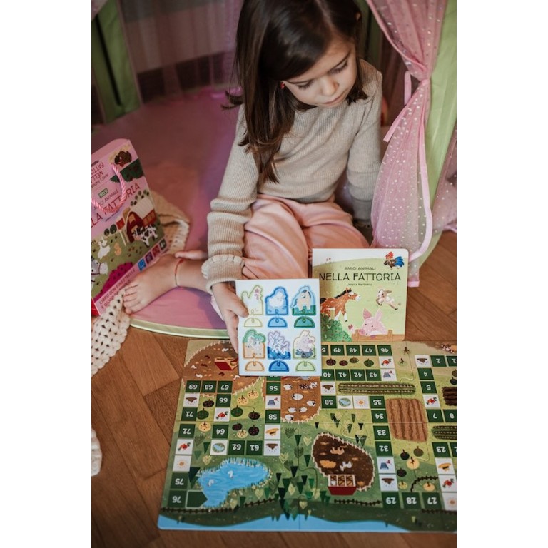 Soulève les petits rabats à l’intérieur du livre et découvre de nombreux faits intéressants sur les animaux de la ferme et leur relation avec les humains. Joue ensuite au jeu de société, inspiré du Jeu de l’oie, avec 6 pions.