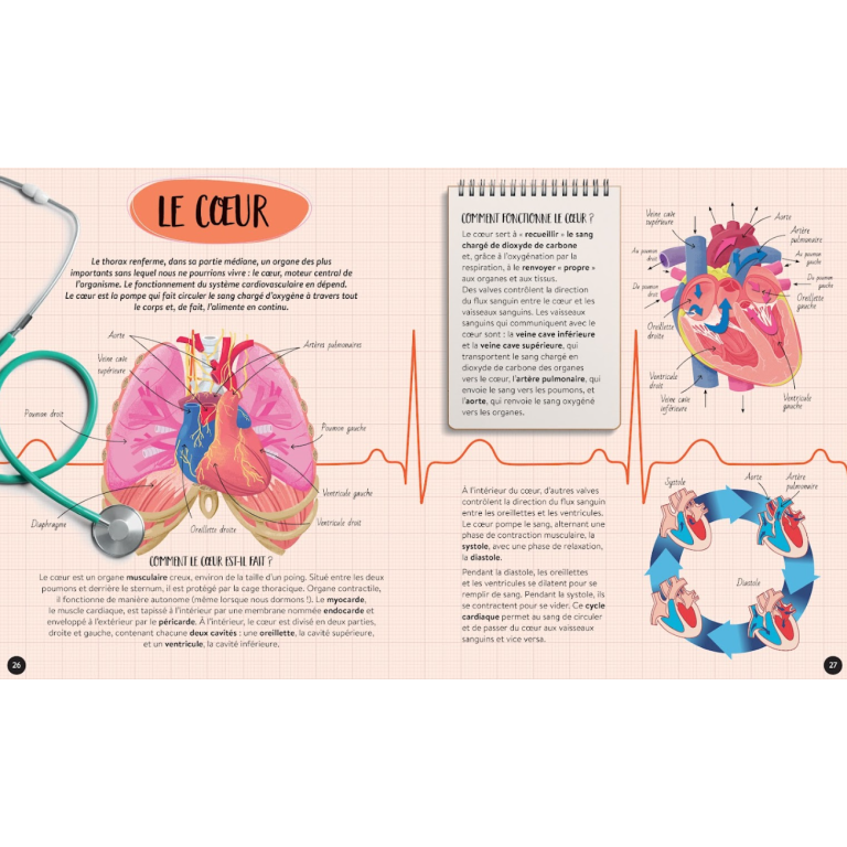 Le corps humain est une machine extraordinaire qui permet de respirer, de penser, de courir, de se nourrir, d'interagir avec les autres... et bien plus encore ! Chacune des plus petites parties de notre corps est une véritable usine high-tech. Mais comment les organes sont-ils faits ? Comment fonctionne l’appareil digestif ? À quoi servent les battements du cœur ? Un atlas plein d'informations passionnantes pour répondre à toutes les questions sur l’organisme humain.