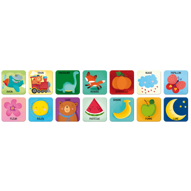 Un jeu de mémoire classique qui permet d’améliorer la concentration et d’apprendre les mots en s’amusant.