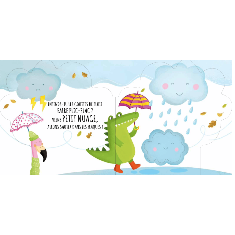 Un joli petit nuage ne cesse de changer : il fait tomber la pluie puis la neige, il fait apparaître le soleil puis l’arc-en-ciel. Autant de changements autour de nous !