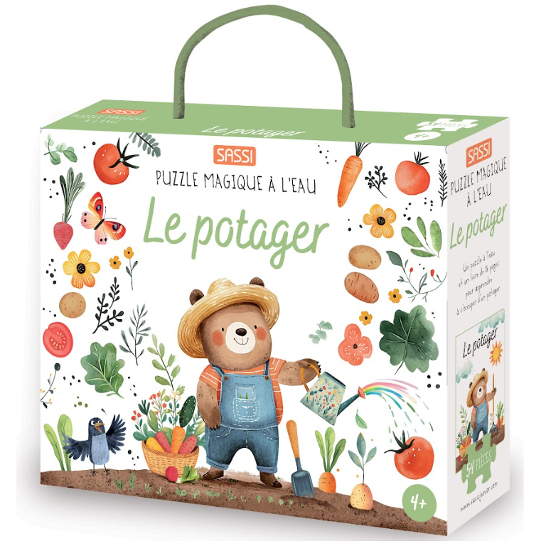 Amuse-toi à découvrir tout ce qui concerne le jardin potager, les plantes et les insectes qui y vivent ! Une boîte contenant un puzzle de 54 pièces à colorier à l’eau et un livret de 16 pages. Mouille le puzzle et révèle les dessins : tu peux le colorier autant de fois que tu le souhaites !