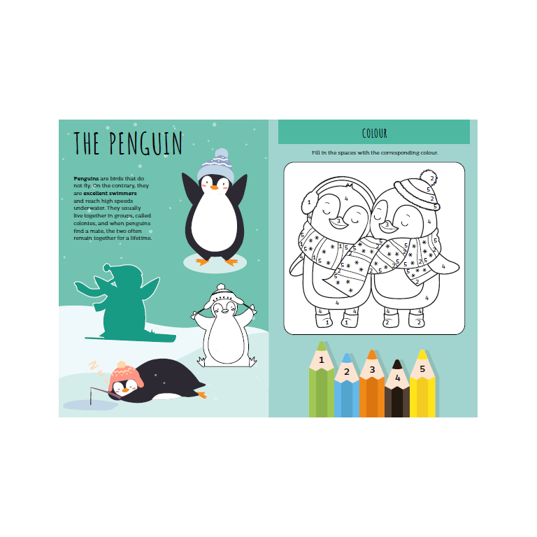An activity book for the little ones with coloring pages, mazes to solve, stickers to stick and lots of fun information about the polar environment and its inhabitants. An innovative and varied activity book for children from three years on, to learn the basics and develop their skills.