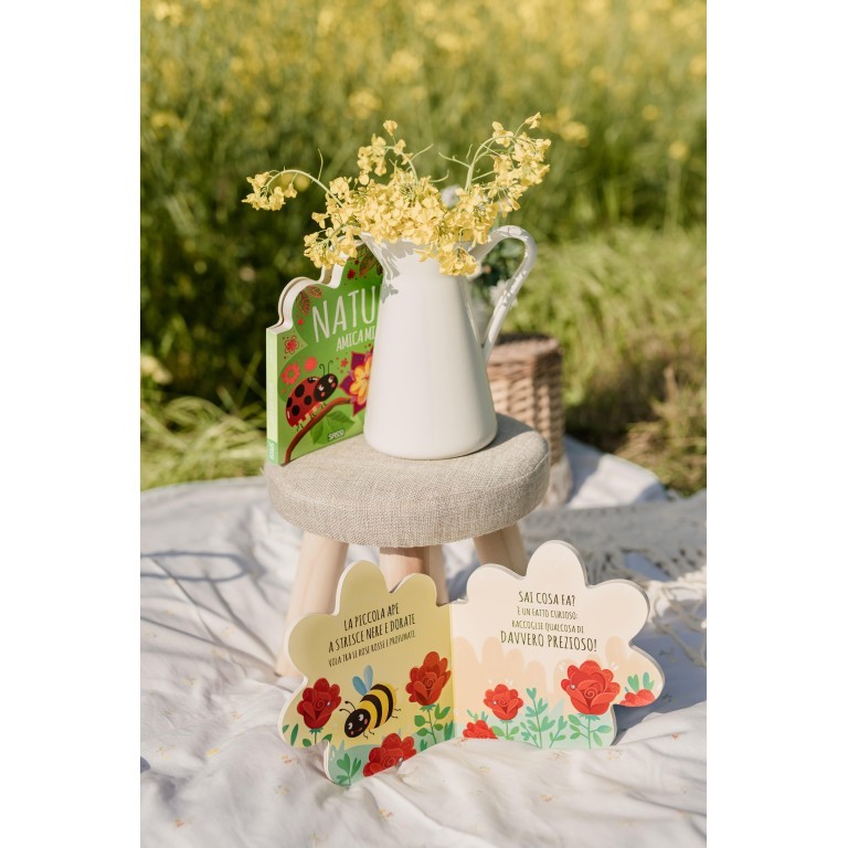 Con questo coloratissimo libro sagomato a forma di fiore, i bambini scopriranno le piccole creature della natura e impareranno a riconoscerle.