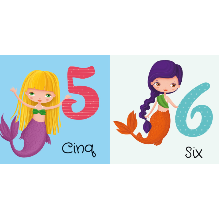 Une boîte ornée de détails pailletés contenant un livre de 10 pages, un puzzle de 40 pièces et 10 sirènes à assembler et à poser sur le puzzle, pour apprendre à reconnaître les chiffres et compter jusqu’à 10.