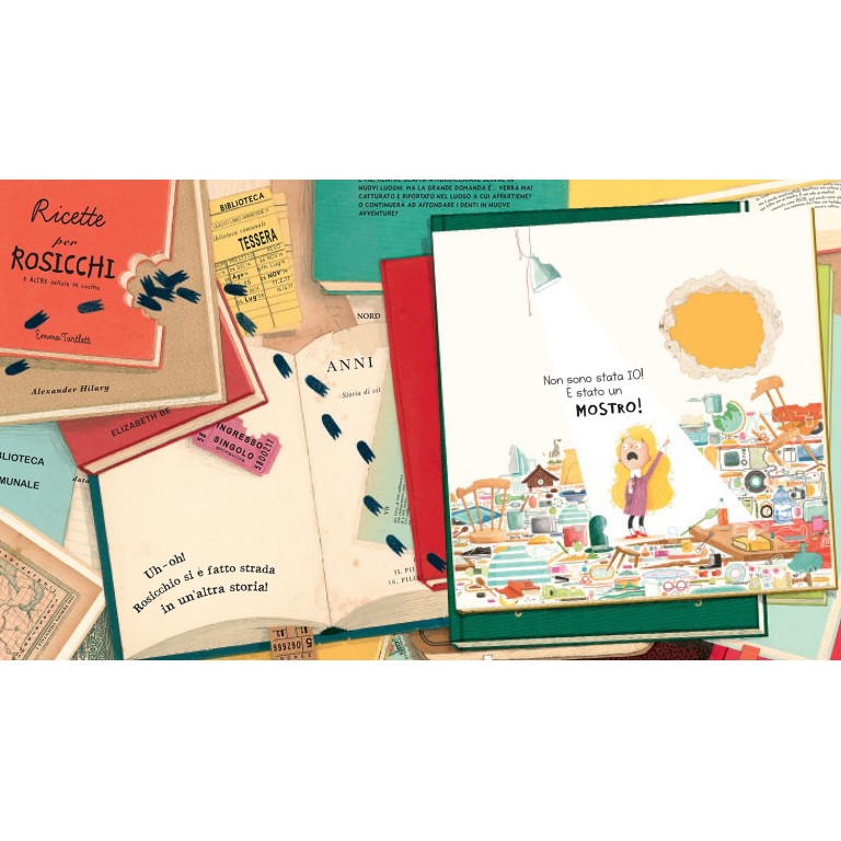 Le petit monstre Rosicchio parvient à se frayer un chemin à coups de dents à travers les pages de certains des contes les plus connus, semant le chaos et provoquant beaucoup de rires !