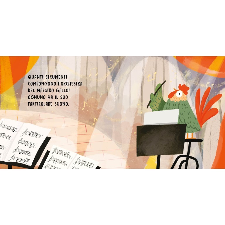 Quali strumenti compongono l’orchestra del maestro Gallo, e quanti suoni differenti producono? Scoprili tutti in questo piccolo libro sonoro dove, pagina dopo pagina, imparerai tutto ciò che succede durante un concerto.