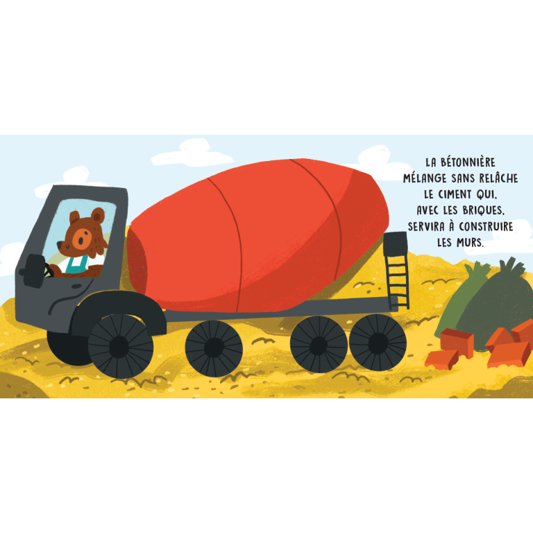 Un livre sonore avec des illustrations simples et délicates et six sons captivants, pour apprendre à reconnaître les bruits des machines à l’œuvre sur un chantier.