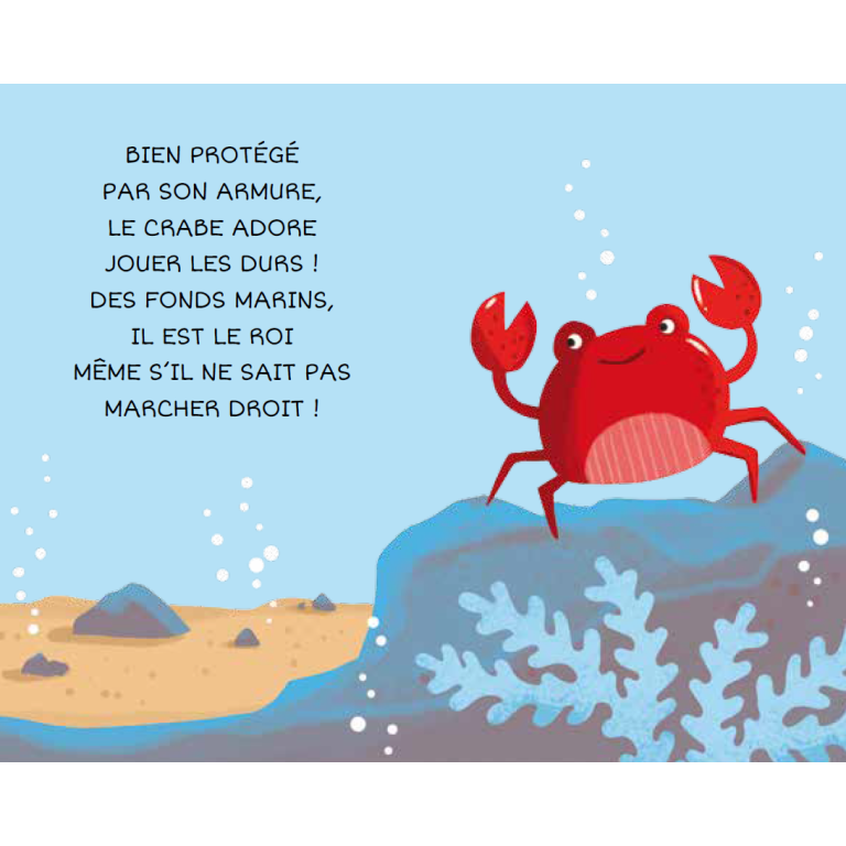 Une splendide et riche bibliothèque de huit livrets robustes consacrés aux créatures marines. Grâce aux rimes, les enfants découvriront des informations simples sur les différents animaux qui peuplent les fonds marins et les eaux de la mer.