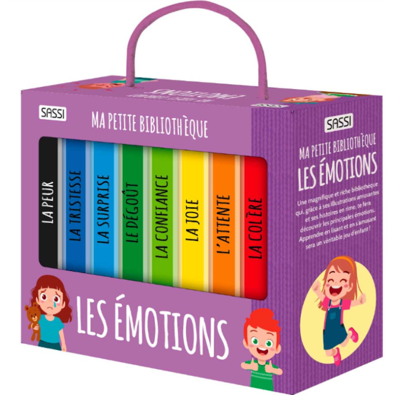 Huit petits livres en carton pour découvrir les huit émotions primaires : la colère, l’attente, la joie, la confiance, le dégoût, la surprise, la tristesse et la peur. Apprends à les reconnaître grâce aux expressions du corps et du visage !