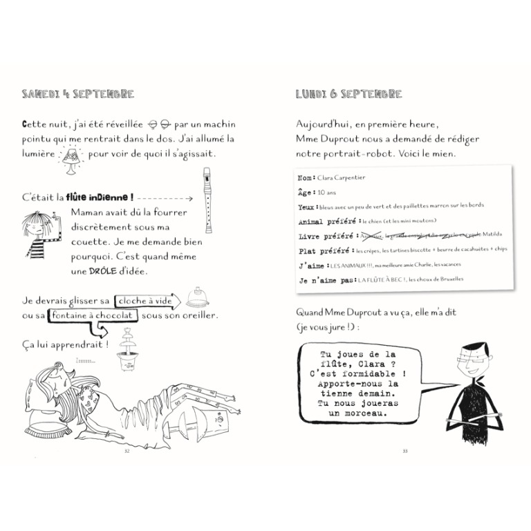 Surtout depuis que maman lui a offert une mystérieuse flûte indienne. En cours, des phrases gênantes apparaissent au tableau comme par enchantement, et des plats délicieux ont tout à coup un affreux goût de choux de Bruxelles... Comme si cela ne suffisait pas, Clara s'est fixé une mission : elle veut à tout prix un animal de compagnie! Et elle a un plan. Pourvu que la maudite flûte ne s'en mêle pas!
