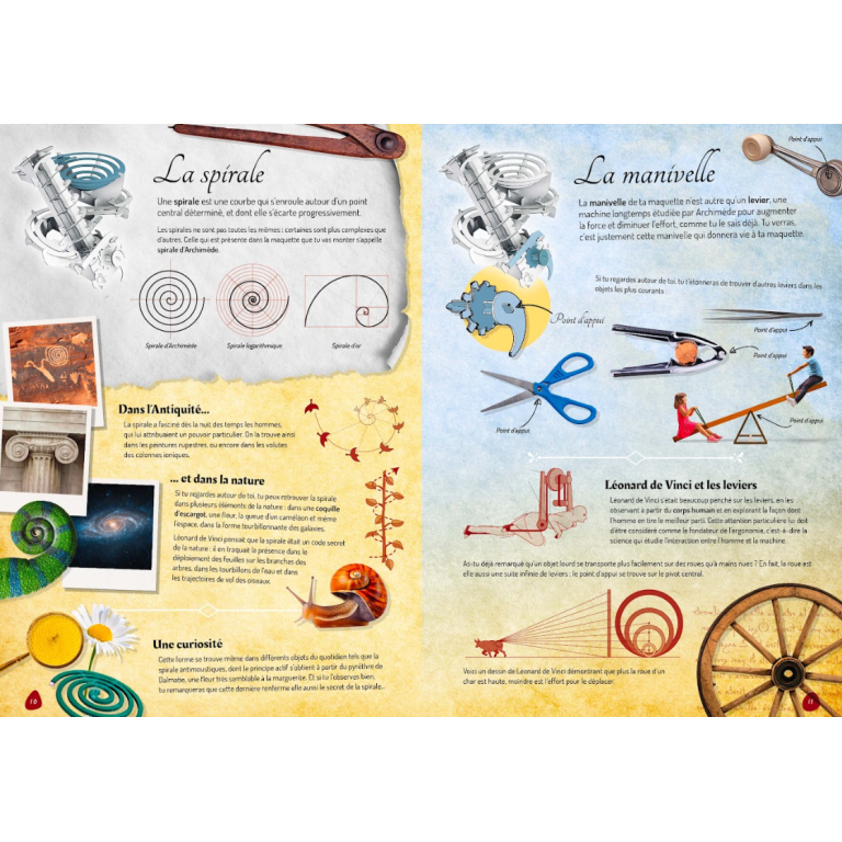 Connais-tu Léonard de Vinci, le célèbre génie de la Renaissance ? Sais-tu qu’en plus d’avoir peint le fameux tableau de la Joconde, il était aussi un grand inventeur ? Assemble, puis joue avec deux des machines qu’il a conçues, la catapulte et l’arbalète. Cela semble incroyable, mais tous les détails des maquettes reproduisent scrupuleusement les dessins de Léonard de Vinci ! En lisant le livre, tu apprendras un tas de choses sur la vie et les idées du grand inventeur de génie, tu découvriras comment fonctionnaient ses inventions et tu verras que certaines de ses idées sont encore utilisées aujourd’hui !