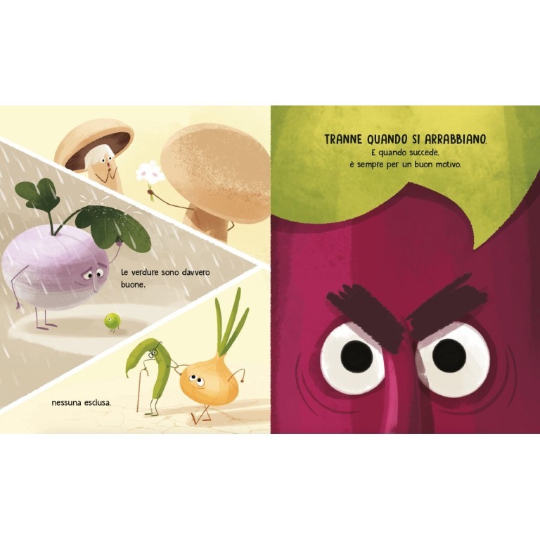 Le verdure sono davvero buone. Tranne quando si arrabbiano. E niente le fa arrabbiare più della fabbrica delle cose inutili. Un posto che emana fumo viola e inquina le acque, rendendo insalubre il terreno dal quale le verdure traggono nutrimento. Il responsabile è uno solo: il signor Riccanza, che controlla gli ingranaggi della sua fortezza d’acciaio. Ma il Fronte Rivoluzionario Ortaggi è pronto a dargli una bella lezione…
