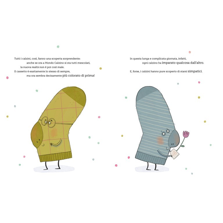 Un racconto divertente e insolito che spiega il valore della diversità attraverso la metafora dei calzini: abituati a stare sempre appaiati con i loro simili, scopriranno che aprirsi agli altri può portare a piacevoli sorprese.