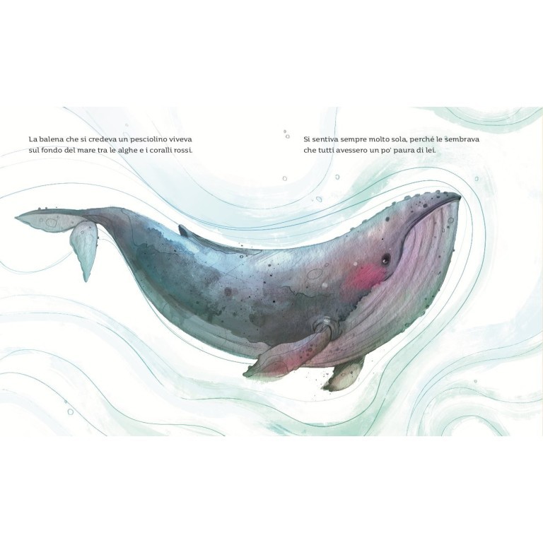 Balena si sentiva sempre molto sola, perché, a causa della sua mole, le sembrava che tutti avessero paura di lei. Eppure sentiva di avere un cuore grande quanto la sua coda gigantesca… Sconsolata, se ne andò lontano da tutti, piangendo. Le sue lacrime, però, illuminarono il fondale di un incantevole arcobaleno, e i pesci presero a guizzare nella sua scia. Balena, allora, continuò a donare all’oceano le sue lacrime colorate, anche se, da quel momento in poi, le sue furono lacrime di gioia.