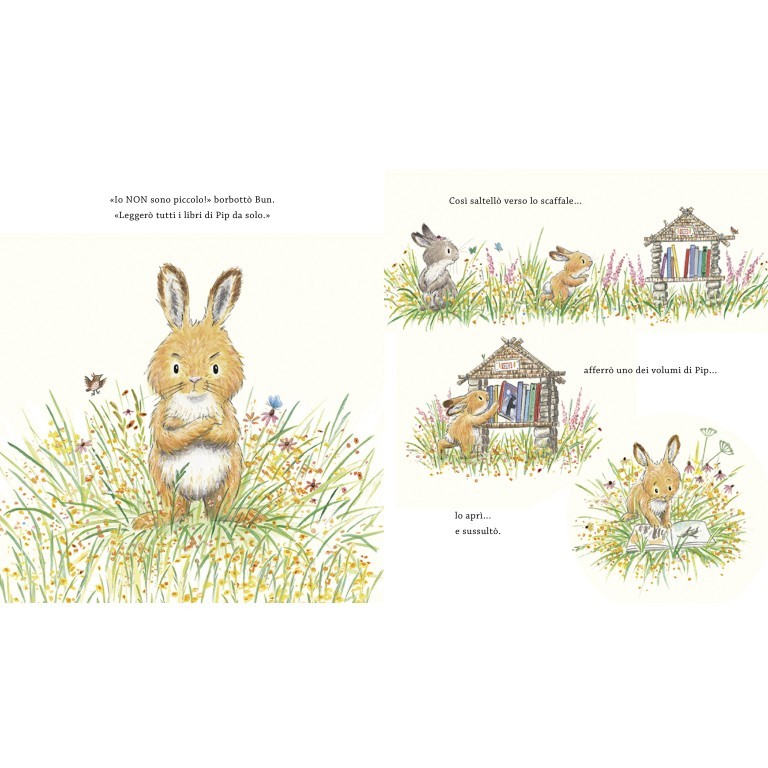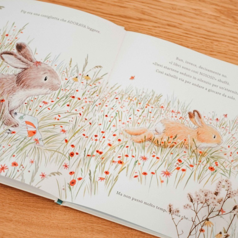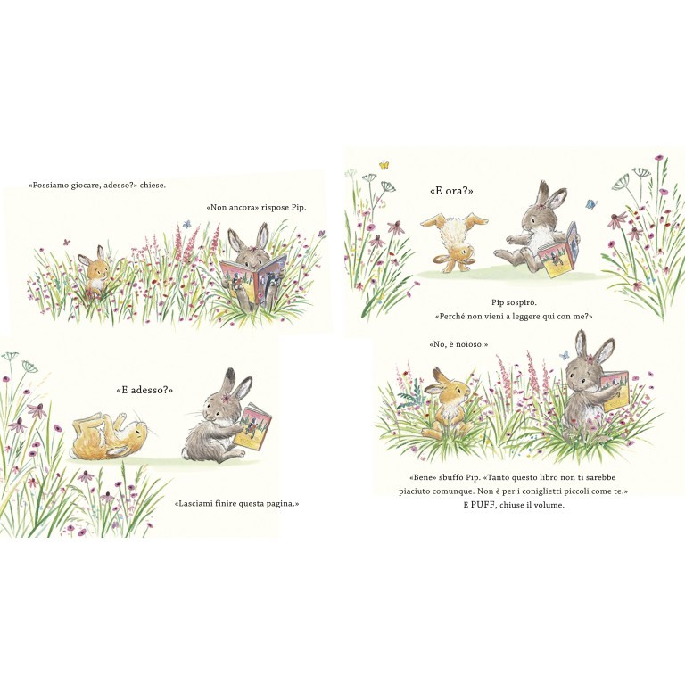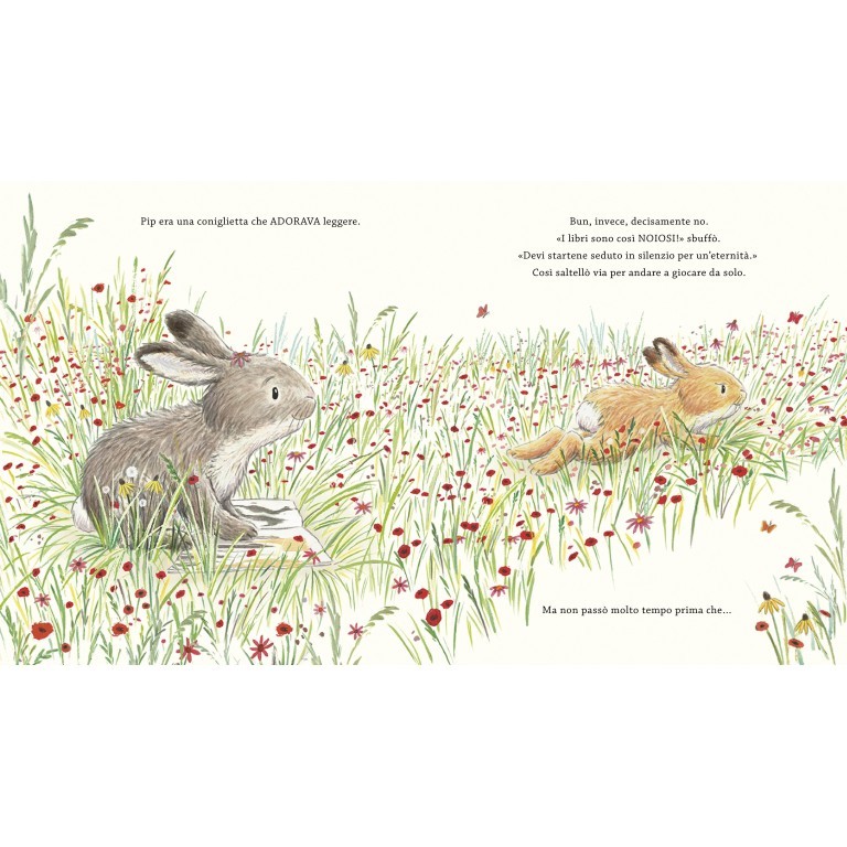 Pip e Bun sono due coniglietti molto diversi: Pip adora leggere, mentre Bun considera la lettura un passatempo davvero noioso. Almeno fino al giorno in cui gli capita di aprire un libro e scoprire che con le storie si possono vivere infinite avventure e viaggiare con la fantasia, senza per forza dover rimanere fermi e in silenzio. D’ora in avanti, Pip e Bun troveranno un modo tutto loro per leggere insieme e passare giornate indimenticabili.
