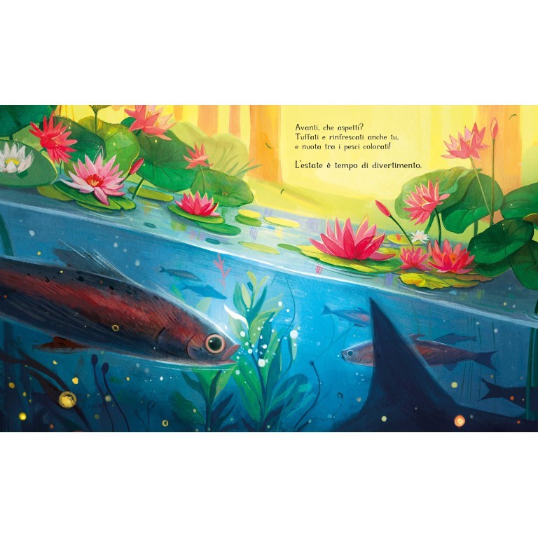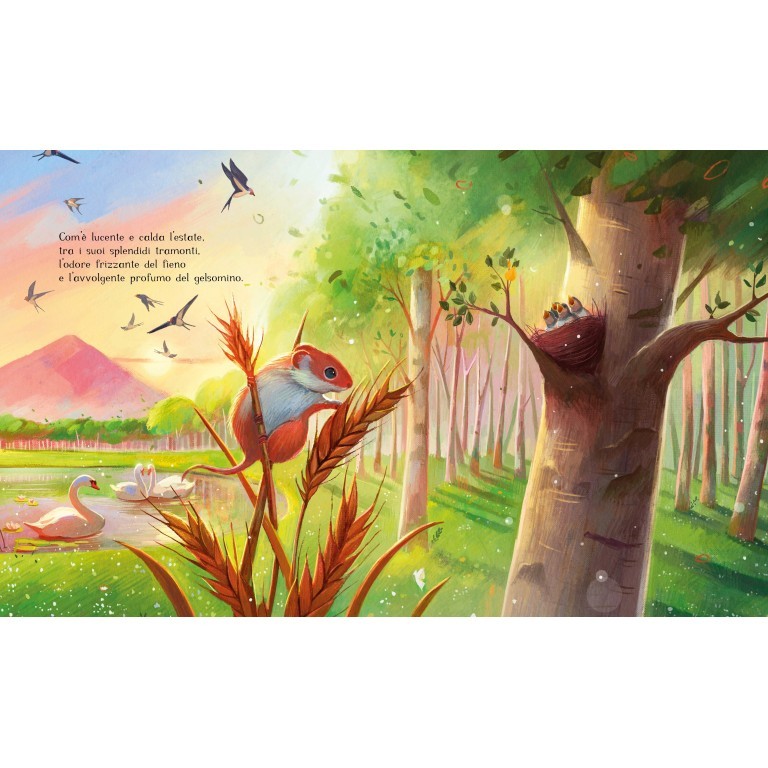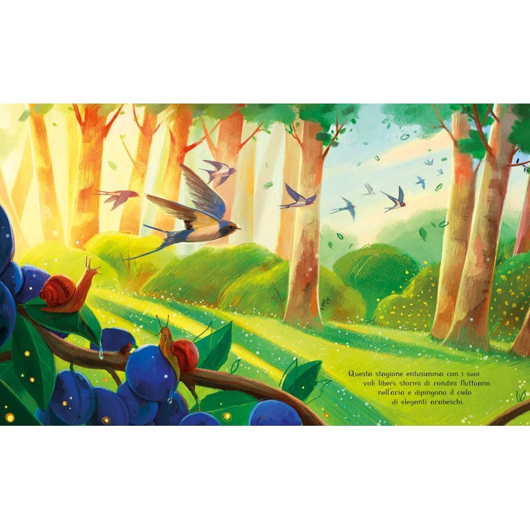 L’estate è la stagione più luminosa e calda dell’anno, da vivere con tutti i sensi. Con il suo sole che splende, i tramonti dorati e l’aria fragrante di fieno e gelsomino, l’estate ci invita a immergerci nella sua bellezza travolgente. Ogni pagina è un viaggio tra voli di rondini, colori vivaci di farfalle e il fresco riflesso di una libellula che danza sull’acqua. È il momento perfetto per tuffarsi nelle acque cristalline, assaporare frutti dolci e scoprire la magia nascosta nei fiori e negli animali.