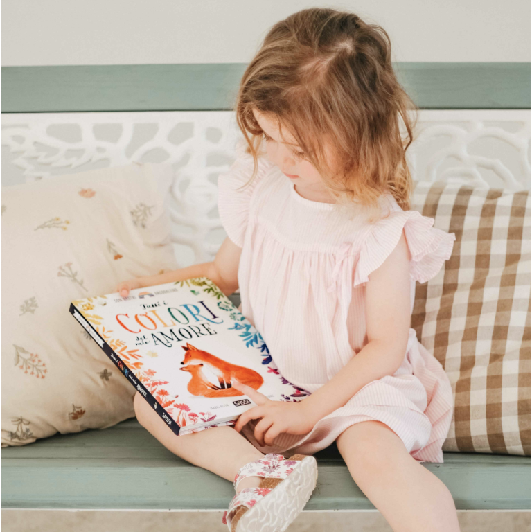 Un poetico albo illustrato cartonato che racconta il legame speciale tra un genitore e il proprio cucciolo attraverso i colori della natura, trasformandoli in dolci metafore di affetto, protezione e gioia. Un viaggio emozionante tra i colori dell’amore, da leggere e condividere, una pagina dopo l’altra, proprio come un grande abbraccio. Ogni pagina è arricchita da un nastro colorato che formerà, insieme a quelli delle altre pagine, uno splendido arcobaleno.