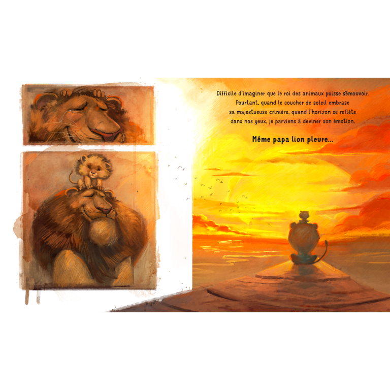 Papa lion est si fort ! Et papa requin a des dents si acérées ! Difficile d’imaginer que, de temps en temps, eux aussi s’autorisent quelques larmes... Et pourtant, tous les papas pleurent, même s’ils sont forts comme des lions, piquants comme des hérissons, vigilants comme des hiboux et courageux comme des gorilles. Tous les papas ont un cœur rempli d’émotions, tout comme moi, tout comme toi !