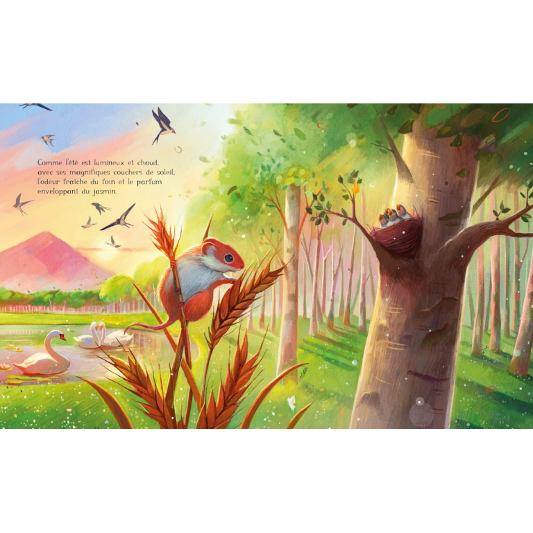Chaque page est un voyage parmi les vols d’hirondelles, les couleurs vives des papillons et le reflet scintillant d’une libellule dansant sur l’eau. C’est le moment idéal pour se jeter dans les eaux cristallines, déguster des fruits sucrés et découvrir la magie cachée dans les fleurs et les animaux.